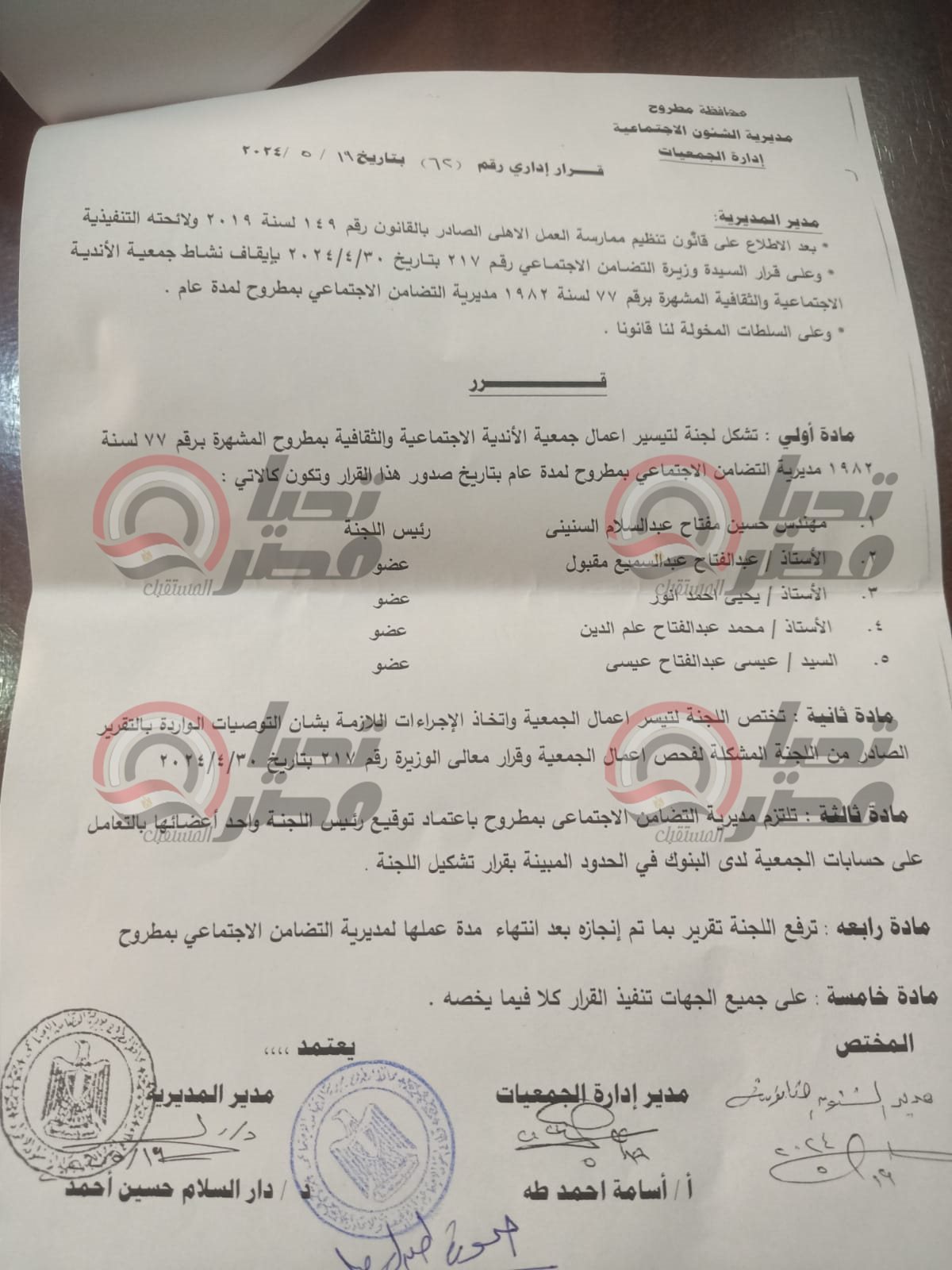 أزمة جمعية الأندية الاجتماعية والثقافية ومديرية التضامن بمطروح