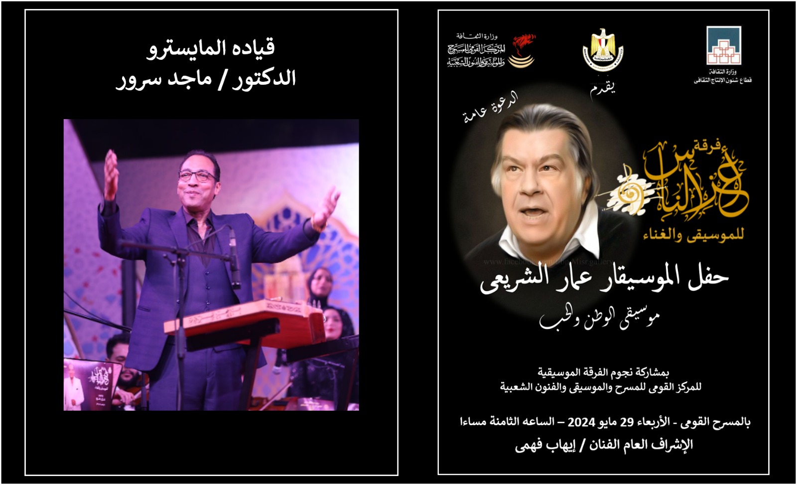 برنامج حفل تكريم اسم الموسيقار الراحل عمار الشريعي في المركز القومي للمسرح
