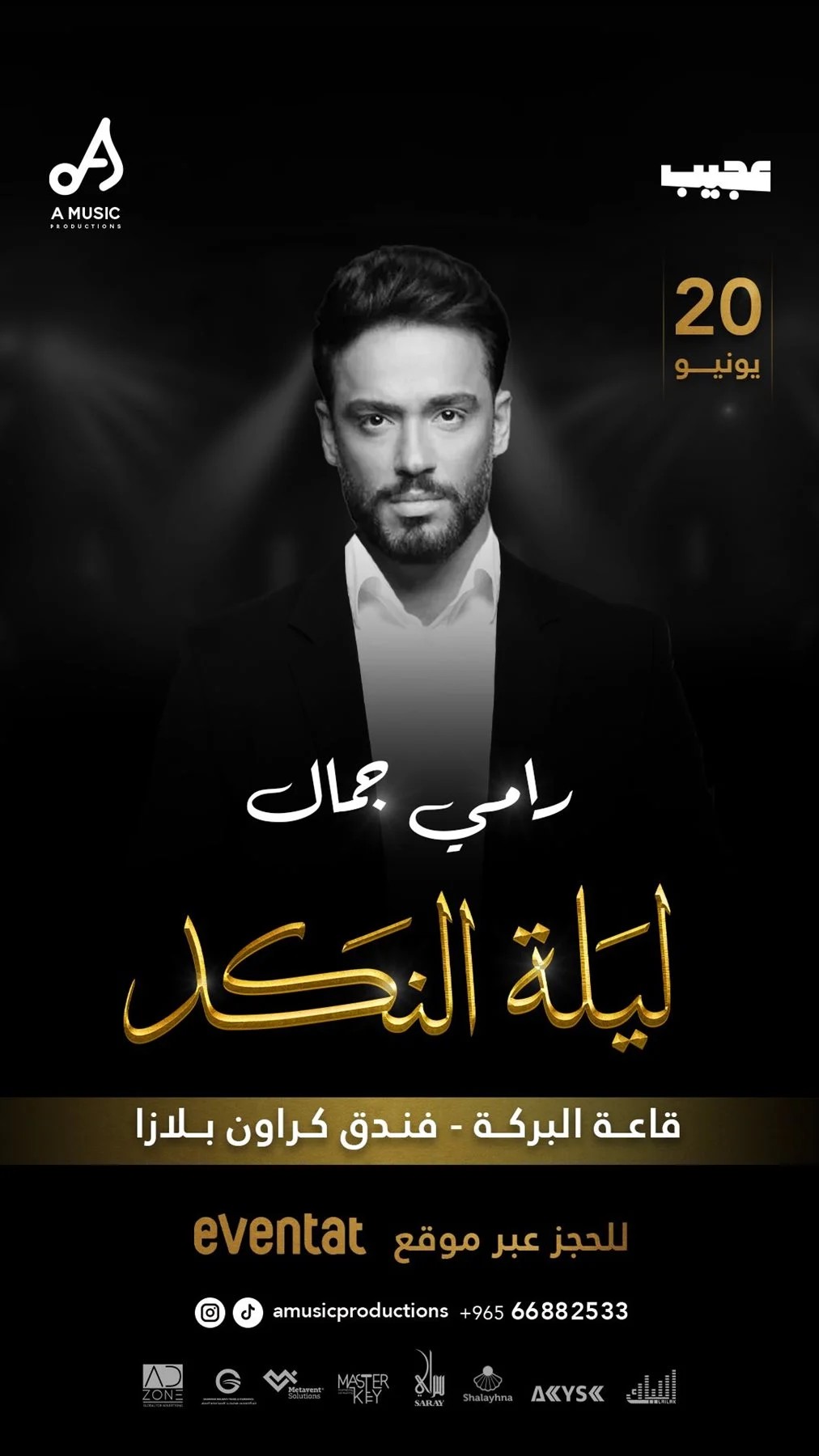 ويشارك أيضا في حفل ليلة النكد في الكويت، الفنان رامي جمال، خاصة بعدما شارك مؤخرا مجموعة من الأغنيات الحزينة التي أثرت في قلوب الجمهور وحققت نجاحات كبيرة، ويتميز أيضا رامي جمال بنبرة صوت مميزة خاصة وأنه ملحن ومطرب في نفس الوقت، لذا لديه حصيلة أعمال فنية مميزة في اللون الحزين.