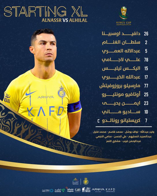 التشكيل الرسمي لنادي النصر أمام الهلال في نهائي كأس خادم الحرمين الشريفين