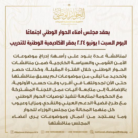 مجلس أمناء الحوار الوطني يجتمع اليوم لمناقشة قضايا الأمن القومي