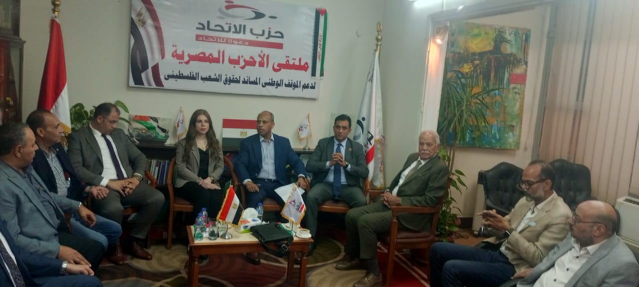 جاء ذلك خلال حلقة نقاشية وندوة تثقيفية نظمها حزب الاتحاد تحت عنوان: "ملتقى الأحزاب المصرية لدعم الموقف الوطني المساند لحقوق الشعب الفلسطيني".