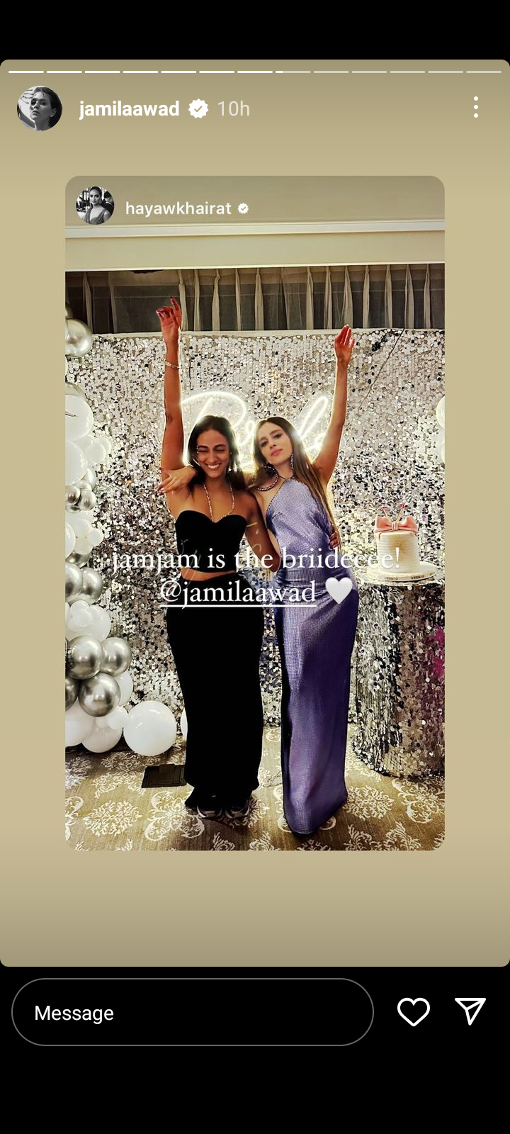 هذا وكانت قد احتفلت جميلة عوض بعقد قرانها على المونتير أحمد حافظ في مساء يوم الاثنين المنقضي وذلك في منزلها بحضور عدد من أفراد أسرتها وبعض أصدقائها المقربين وبعيدا عن ضجة وسائل الإعلام والسوشيال ميديا.