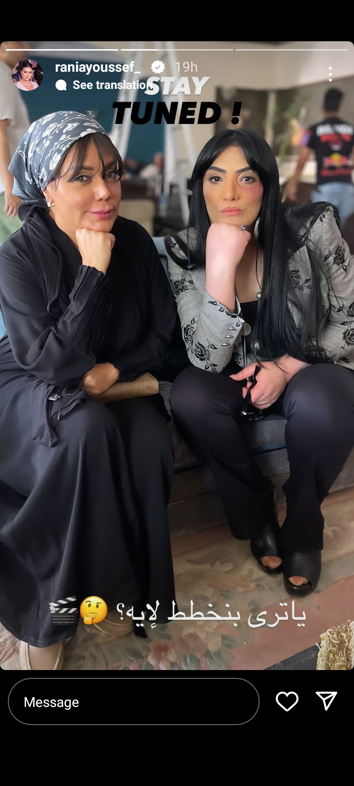 شاركت الفنانة رانيا يوسف صورة لها رفقة الفنانة حورية فرغلي عبر حسابها الرسمي بموقع تبادل الصور والفيديوهات انستجرام من كواليس تصوير إحدى أعمالهم الفنية دون الكشف عن تفاصيل العمل.