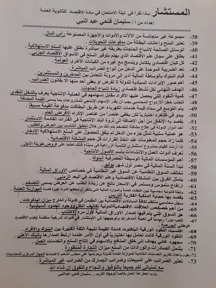 وجاءت الأسئلة المتوقعة فى الاقتصاد للثانوية العامة 2024 فى ورقتين كالتالي: