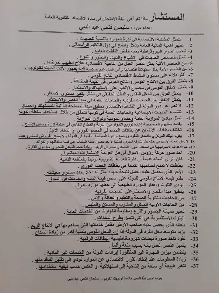 الأسئلة المتوقعة فى الاقتصاد للثانوية العامة 2024