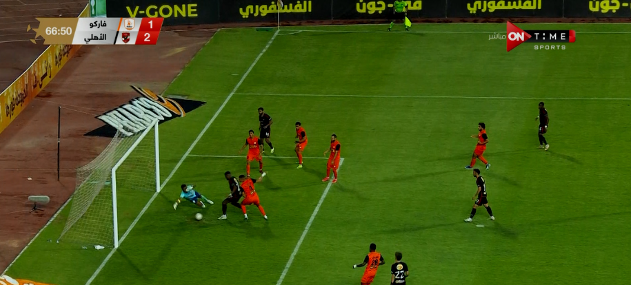ومع بداية الشوط الثاني من مباراة الأهلي وفاركو انفرد أنتوني موديست بمرمى فاركو وسدد الكرة بطريقة غريبة وأهدر الهدف الأول للنادي الأهلي.