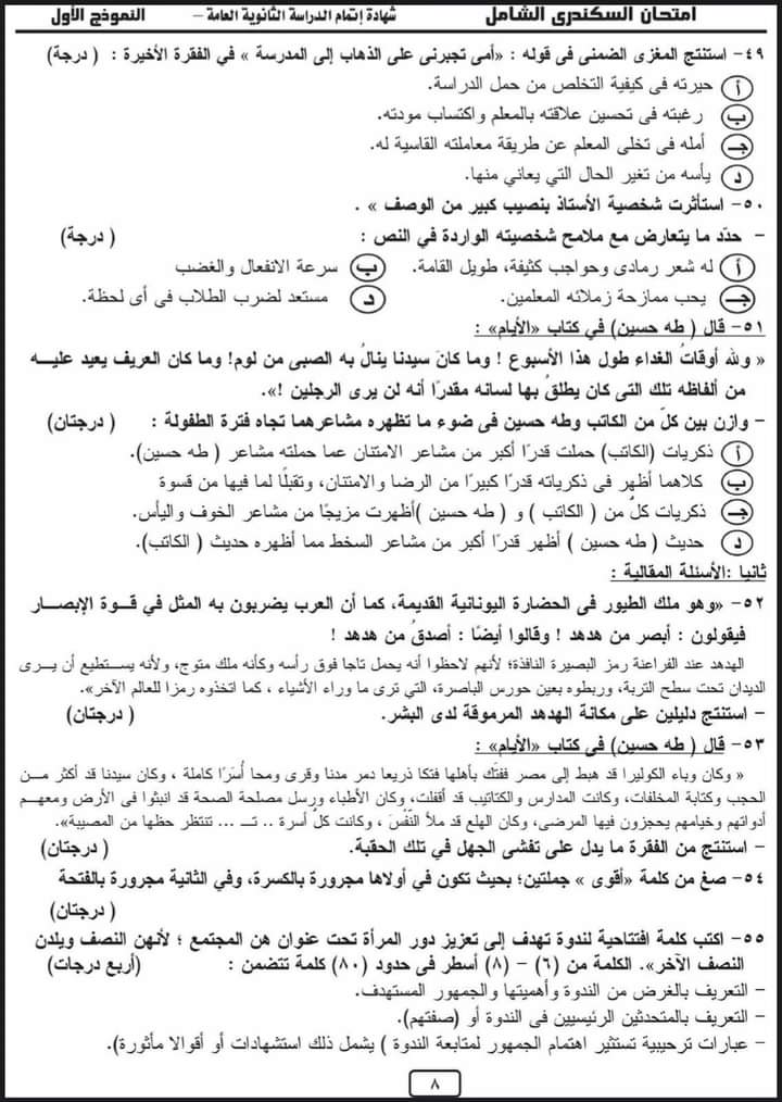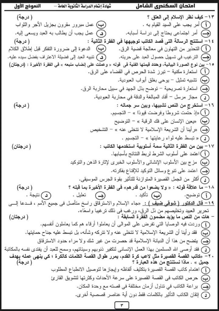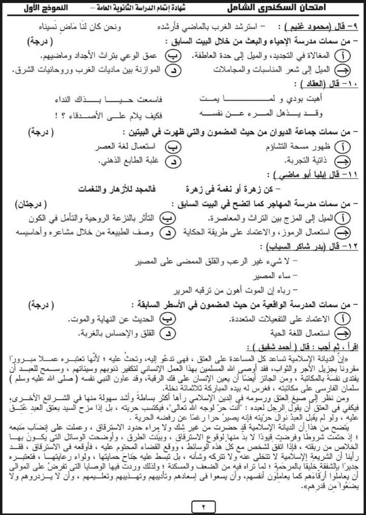 وجاء نموذج امتحان اللغة العربية للثانوية العامة 2024 كالاتى: