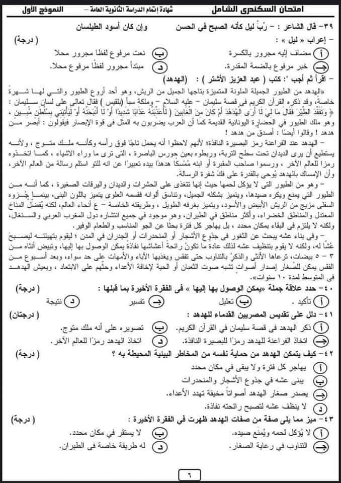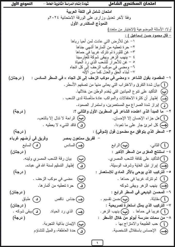 وجاء نموذج امتحان اللغة العربية الاسترشادى للثانوية العامة كالآتى: