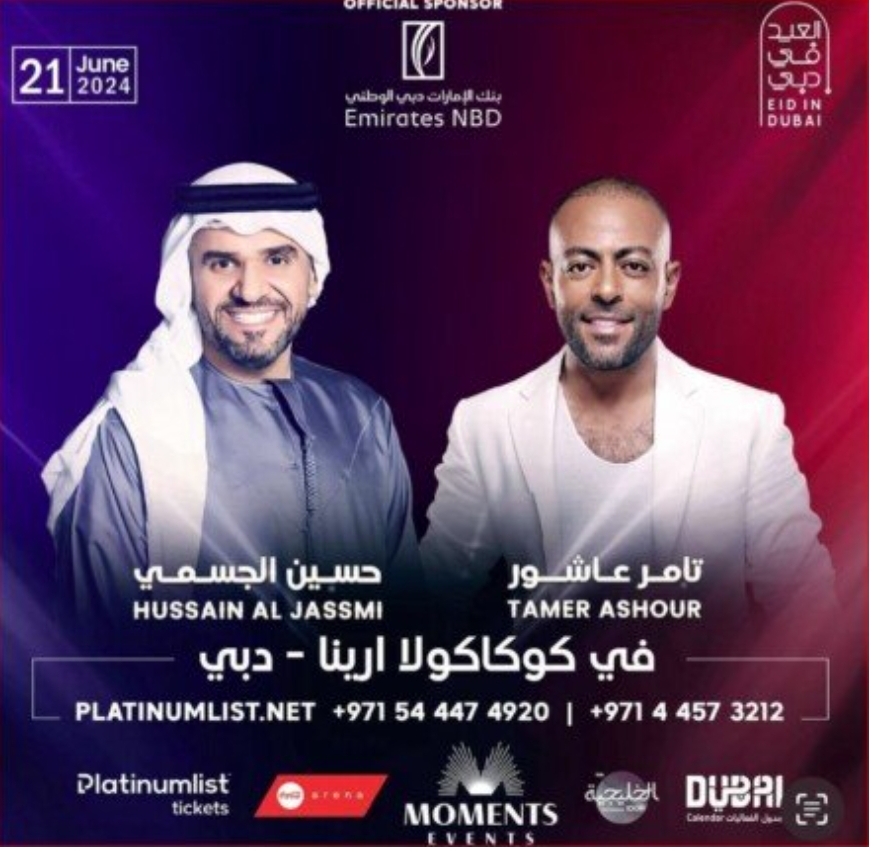 أعلن الفنان تامر عاشور سابقاً عن تواجده بجانب الفنان حسين الجسمي في حفل دبي في الأمارات، عبر حسابه الرسمي بموقع تبادل الصور والفديوهات إنستجرام ورصده موقع تحيا مصر، وكتب: "مستنيكم ان شاء الله في كوكاكولا أرينا دبي مع النجم الكبير واخي وصديقي الفنان حسين الجسمي يوم 21-6-2024"، وكانت قد استقرت الجهة المنظمة لحفل شيرين عبد الوهاب والقنان حسين الجسمي على الفنان تامر عاشور ليكون بديلا لها بعد اعتذارها عن الحفل بسبب انشغالها بالسفر في رحلة استشفائية لمدة معينة.
