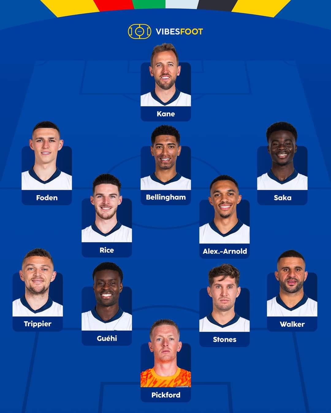 حيث جاء تشكيل منتخب إنجلترا أمام منتخب الدنمارك في مباراة الجولة الثانية من دور المجموعات من بطولة الأمم الأوروبية 2024 لحساب المجموعة الثالثة كالتالي:
