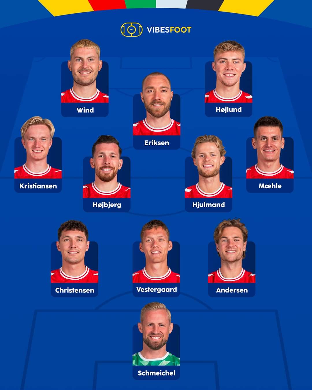 أما اختيارات كاسبر هيولماند لتشكيل منتخب الدنمارك أمام منتخب إنجلترا في مباراة الجولة الثانية من دور المجموعات من بطولة الأمم الأوروبية 2024 جاءت كما يلي: