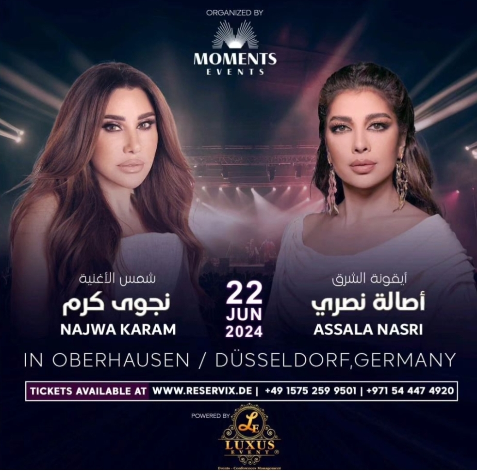الليلة.. حفل الفنانة أصالة ونجوى كرم في ألمانيا