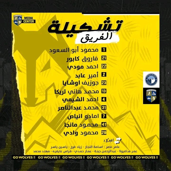 خط الهجوم: مصطفى فتحي، فاخري لاكاي، إبراهيم عادل.