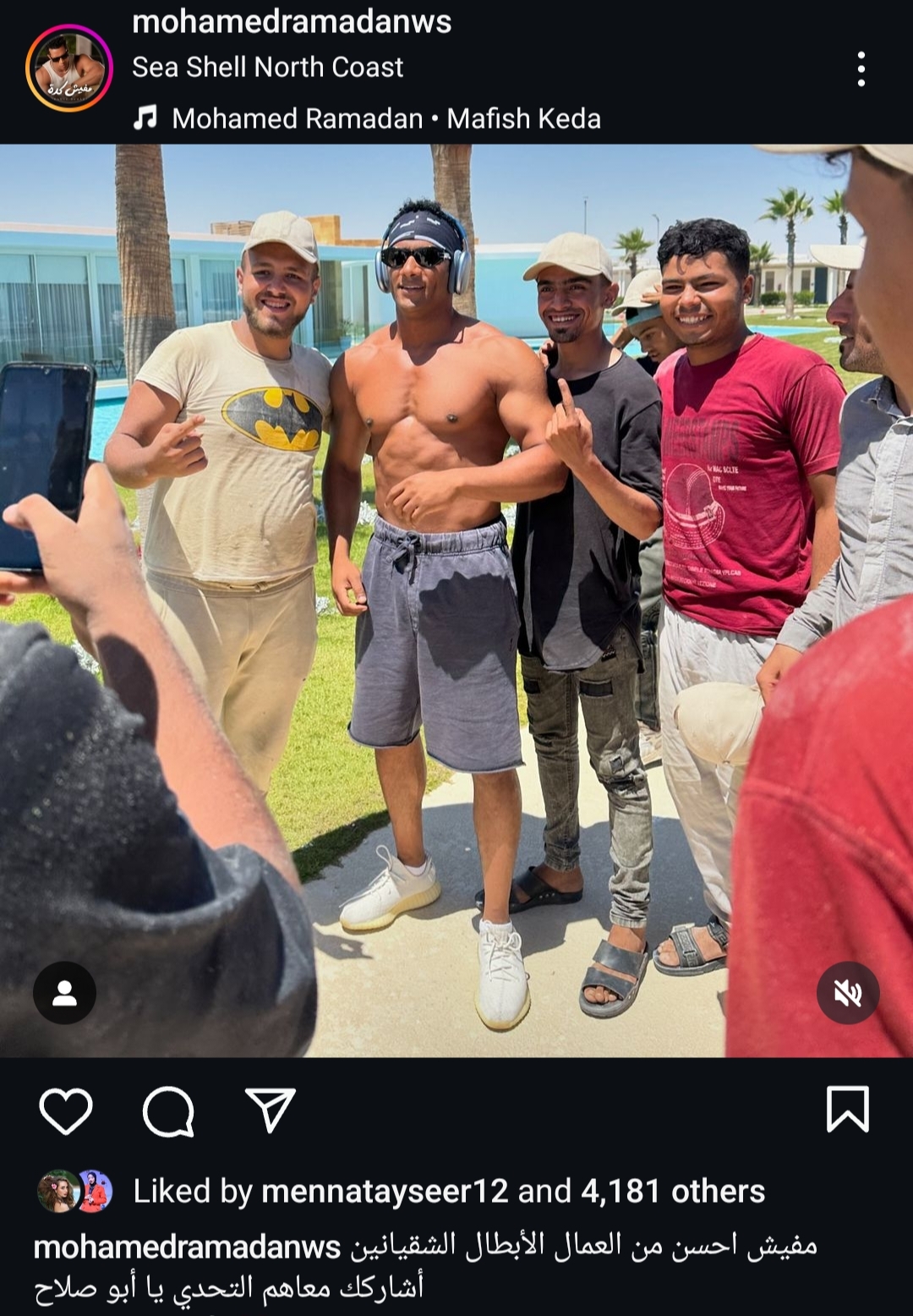 محمد رمضان يشارك صورة للعمال في الساحل الشمالي: مفيش أحسن من العمال الشقيانين