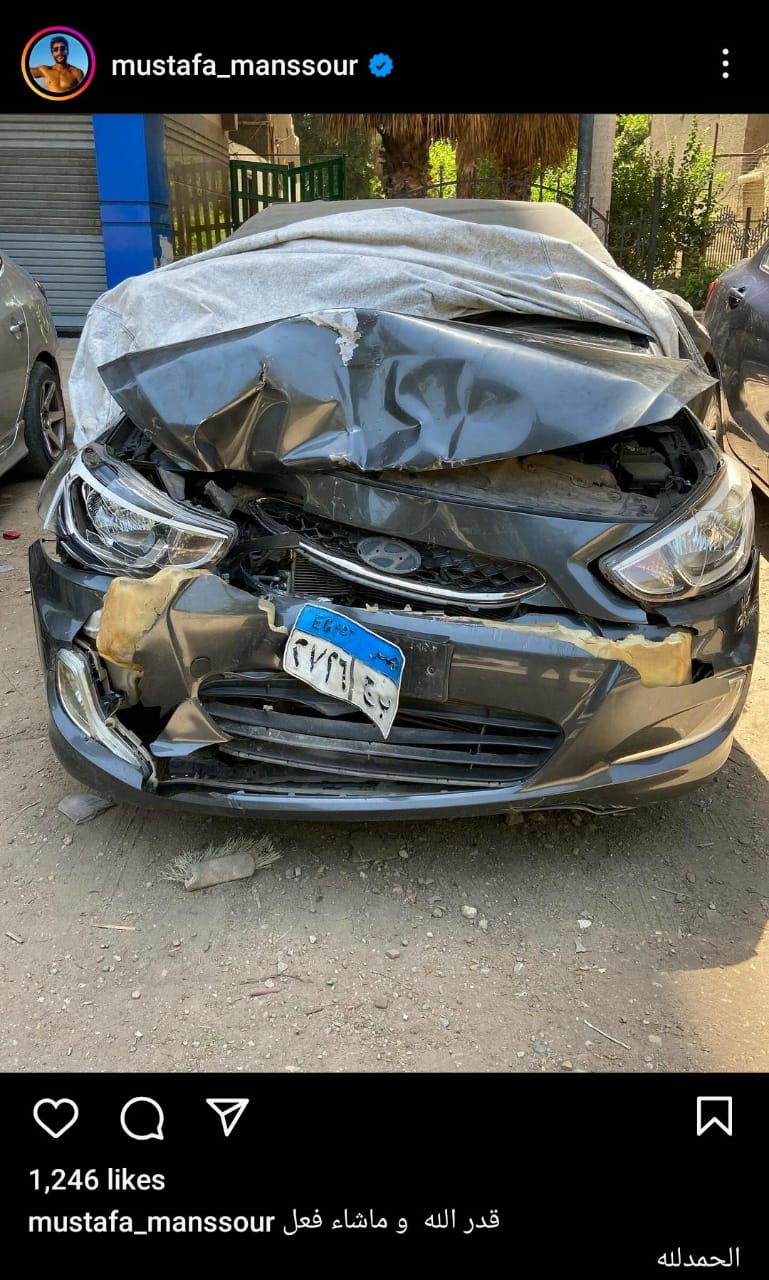 ونشر مصطفى منصور في منشوره الذي يرصده موقع تحيا مصر صورة لسيارته المهشمة، وعلق عليها قائلا: “قدر الله وما شاء فعل، الحمد لله”، وقد حاز المنشور على إعجاب عدد كبير من الجمهور والمتابعين الذين تمنوا له السلامة.