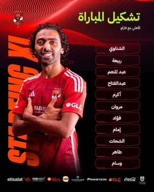 وسام أبو علي في الهجوم|التشكيل الرسمي لمباراة النادي الأهلي أمام فاركو في دوري نايل
