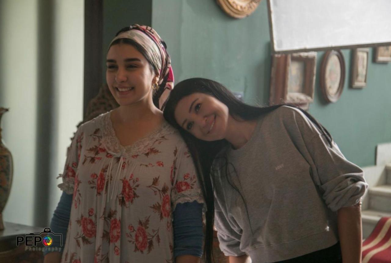 جيهان خليل رفقة أروى جودة من كواليس تصوير مسلسل حرب نفسية