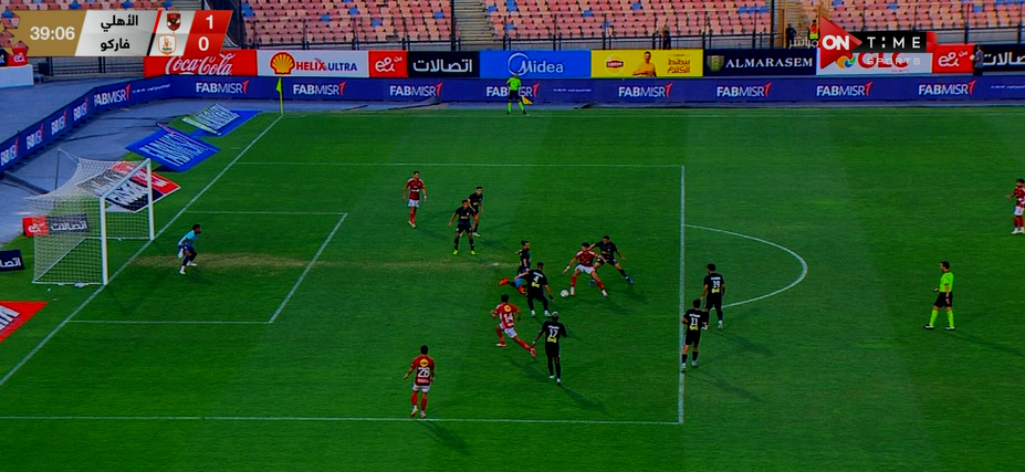 وتوغل حسين الشحات داخل منطقة الجزاء وتمكن أن يرسل الكرة لوسام أبو علي ومرر الكرة لحسين الشحات والذي سدد الكرة بطريقة رائعة داخل شباك فاركو، ولم يتمكن شيكا في التعامل مع الكرة.