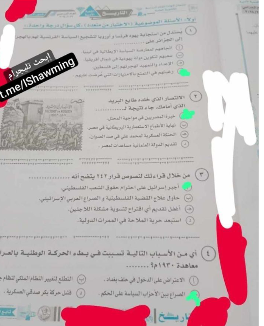 وتداولت إجابة امتحان التاريخ للثانوية العامة 2024 على مواقع التليجرام ولكن حتى الآن لم تصدر وزارة التربية والتعليم والتعليم الفنى نموذج إجابة امتحان التاريخ للثانوية العامة 2024
