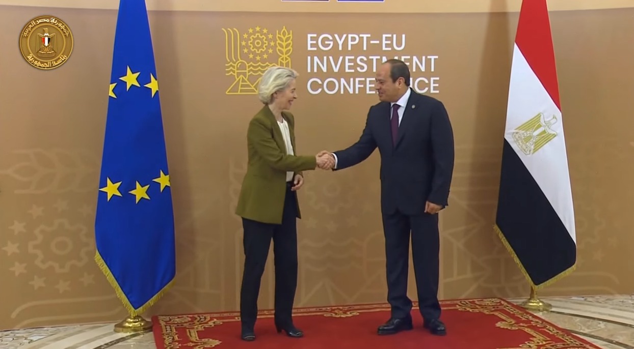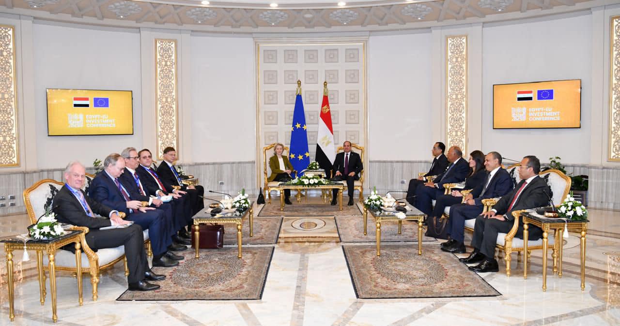 وأوضح المتحدث الرسمي باسم رئاسة الجمهورية أن اللقاء شهد تأكيد عمق وقوة العلاقات المصرية الأوروبية، التي توجت مؤخراً بترفيعها إلى مستوى الشراكة الاستراتيجية والشاملة، بما يعكس الأهمية التي توليها مصر والاتحاد الأوروبي لتعزيز تعاونهما بوصفه ركيزة للتكامل والاستقرار الإقليمي، حيث يمثل مؤتمر الاستثمار أولى محطات تنفيذ هذه الشراكة. وأكدت رئيسة المفوضية الأوروبية في هذا الصدد أن انعقاد المؤتمر يعكس المصالح التي يتقاسمها الجانبان، وحرص الاتحاد الأوروبي على دعم مسار التنمية والإصلاح الاقتصادي الذي تشهده مصر.