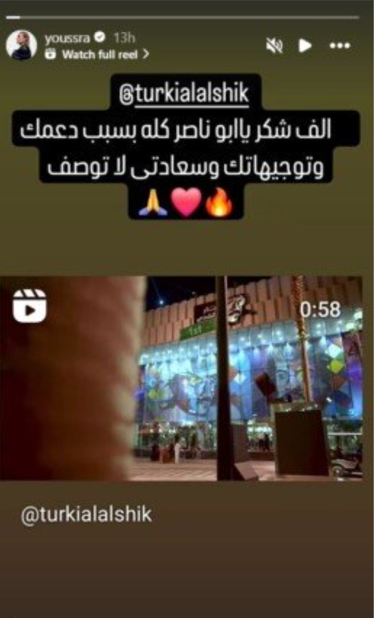 وجهت الفنانة يسرا رسالة للمستشار تركي آل الشيخ رئيس هيئة الترفيه في المملكة العربية السعودية، لتشكره على جهوده ودعمه الكامل بعد العرض الأول لمسرحية ملك والشاطر.
