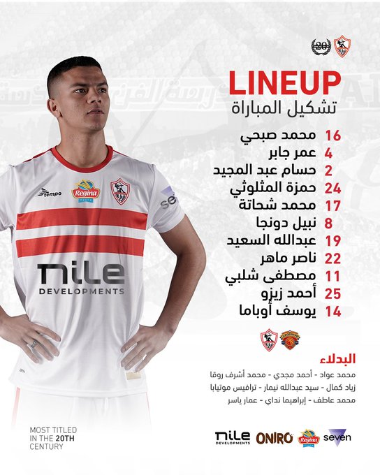خط الهجوم: مصطفى شلبي، أحمد سيد زيزو، يوسف أوباما.