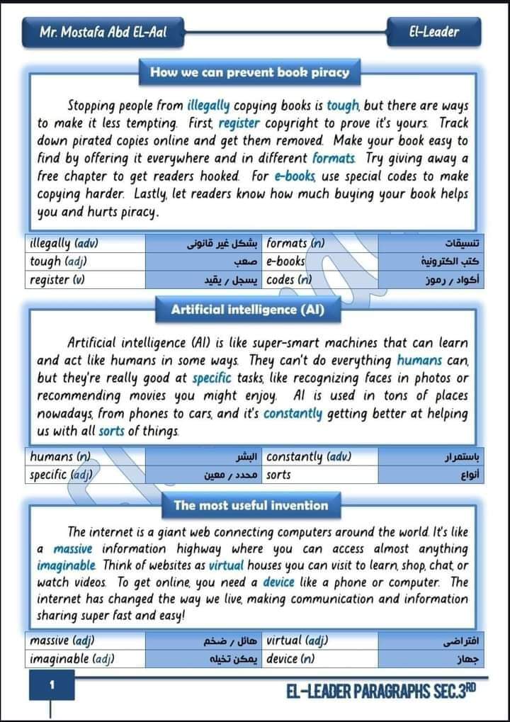 اهم البرجرافات المتوقعة للثانوية العامة فى امتحان اللغة الإنجليزية