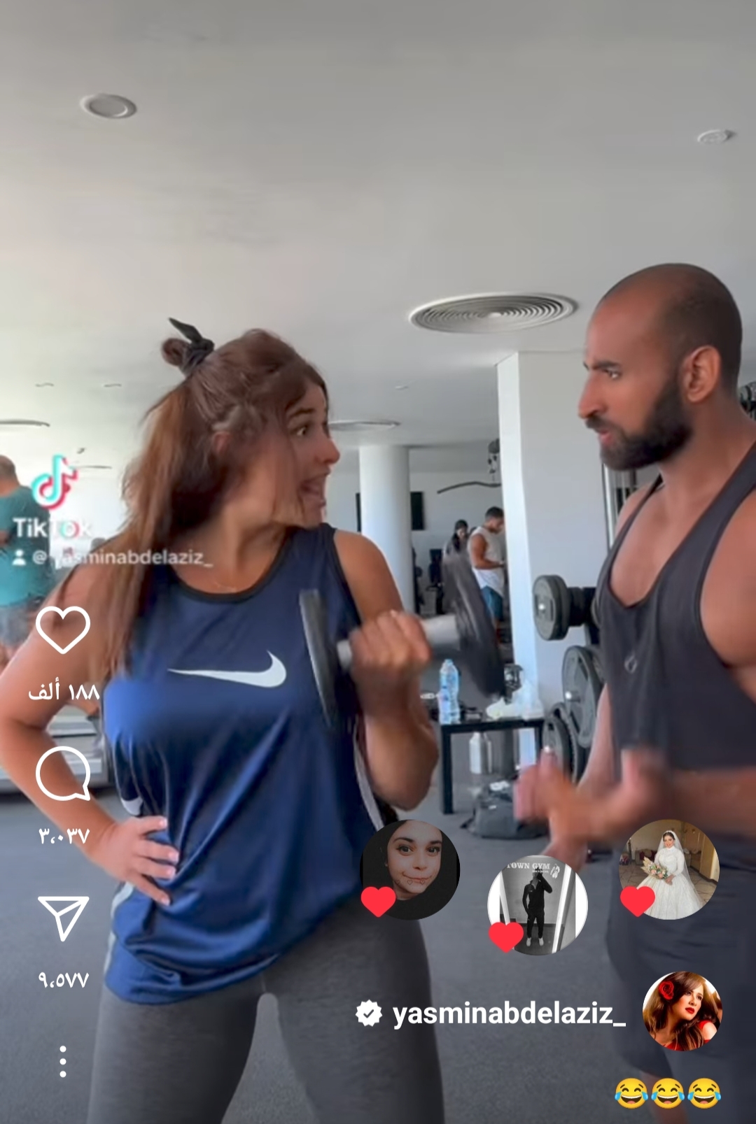 شاركت الفنانة ياسمين عبد العزيز، فيديو جديد عبر حسابها الشخصي على موقع التواصل الاجتماعي للصور والفيديوهات انستجرام من داخل الجيم.