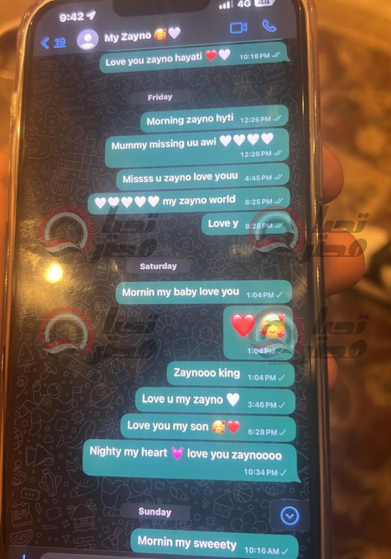 يذكر ان في اخر ايام الرسائل كان رقم والدة زين زوجة سفاح التجمع تم وضعه على الحظر الا انها كما توضح الصور استمرت في مراسلة ابنها املا في الحصول على اي رد وهو ما لم يتم حتى يومنا هذا بحسب تصريحات زوجة سفاح التجمع .