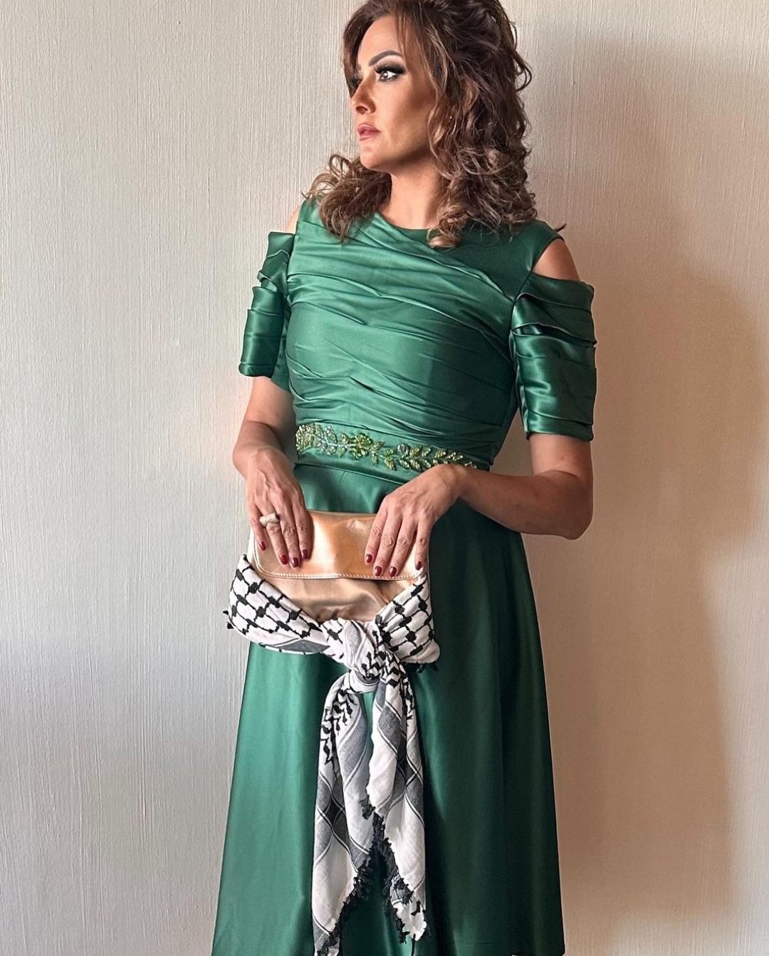 نشرت الفنانة بشرى، مجموعة من الصور من حفل افتتاح مهرجان عمان السينمائى الدولى، بدورته الخامسة، المُقام بدولة الأردن، وظهرت خلال الحفل بإطلالة رقيقة مكون من فستان أخضر، وبجانب الشنطة الشال الفلسطيني.