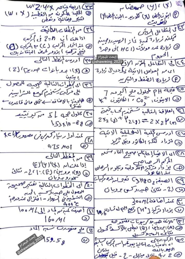 تسريب امتحان الكيمياء للثانوية العامة اليوم