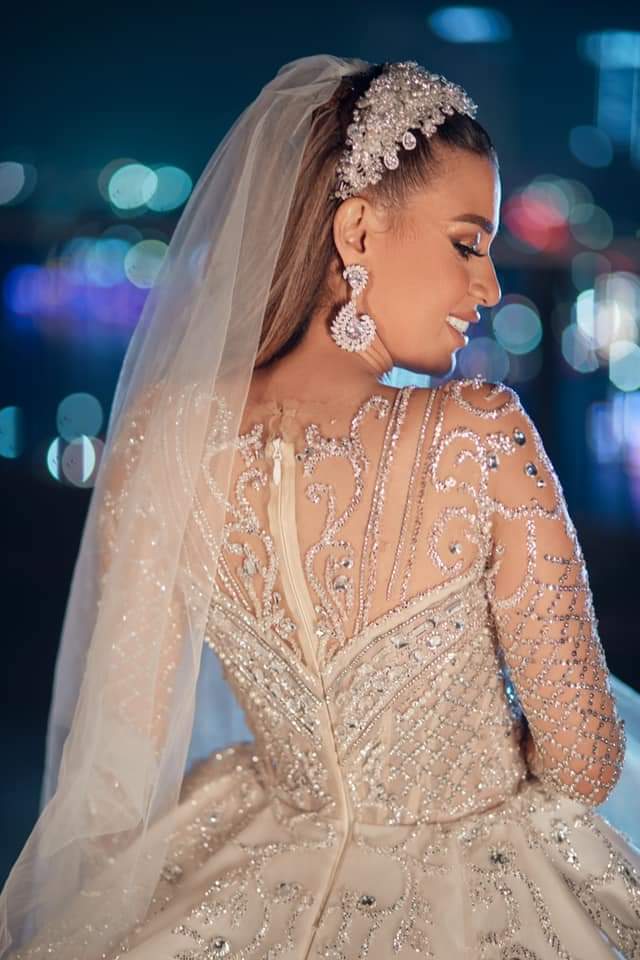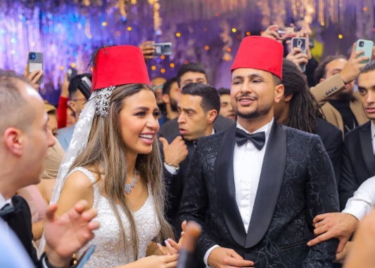 إطلالة علي غزلان وفرح شعبان في حفل زفافهما