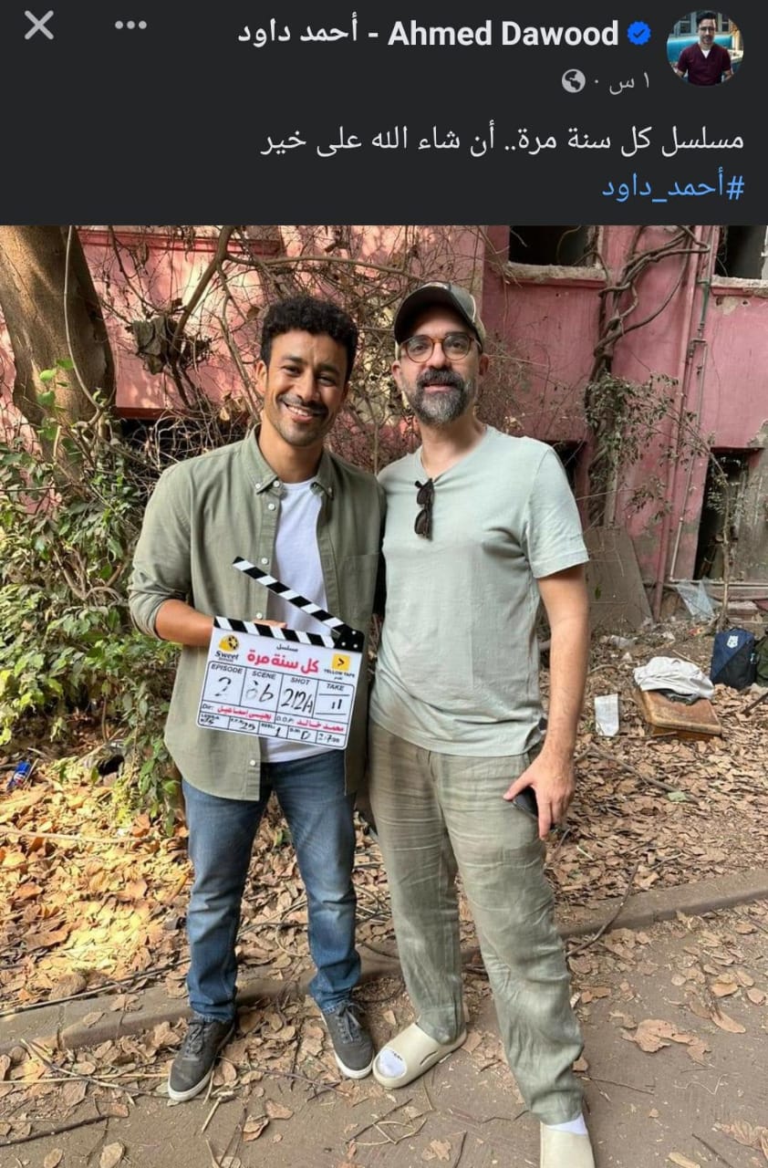 أعلن الفنان أحمد داوود عن بدء تصوير مسلسله الجديد كل سنة مرة، وذلك من خلال منشور عبر حسابه الشخصي على موقع التواصل الاجتماعي فيسبوك.