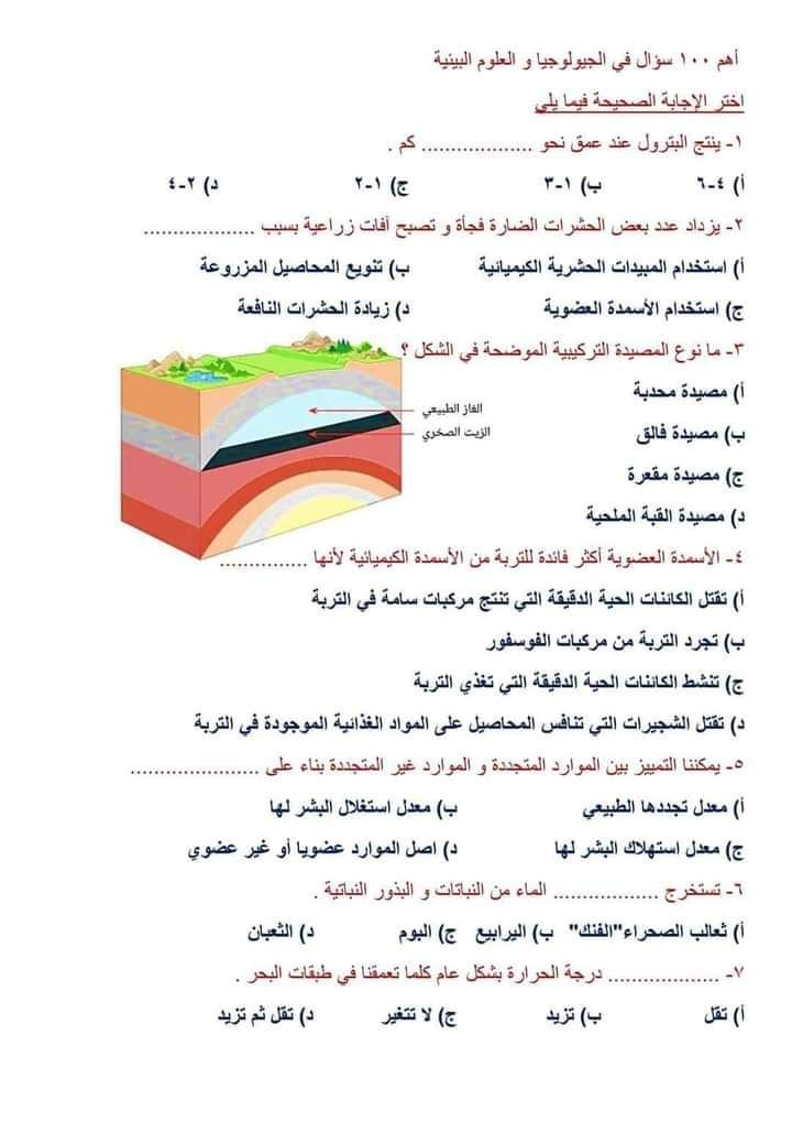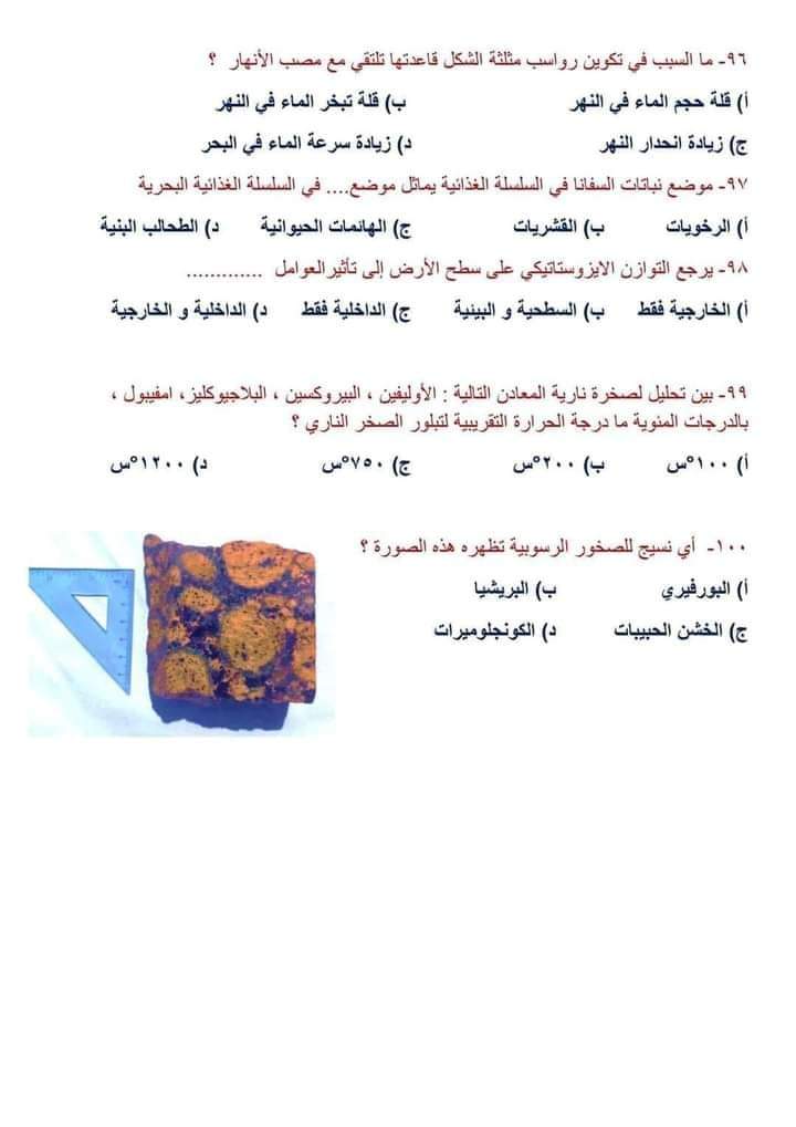 - أهم 100 سؤال بالحل فى مادة الجيولوجيا للثانوية العامة 2024