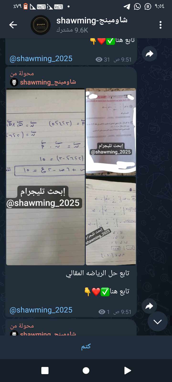 تداولت جروبات شاومينج للغش أسئلة امتحان الجبر والفراغية للثانوية العامة 2024 على التليجرام ال الذى يؤديه طلاب الشعبة العلمية علمى رياضة فى الساعة التاسعة صباح اليوم الأربعاء داخل اللجان.