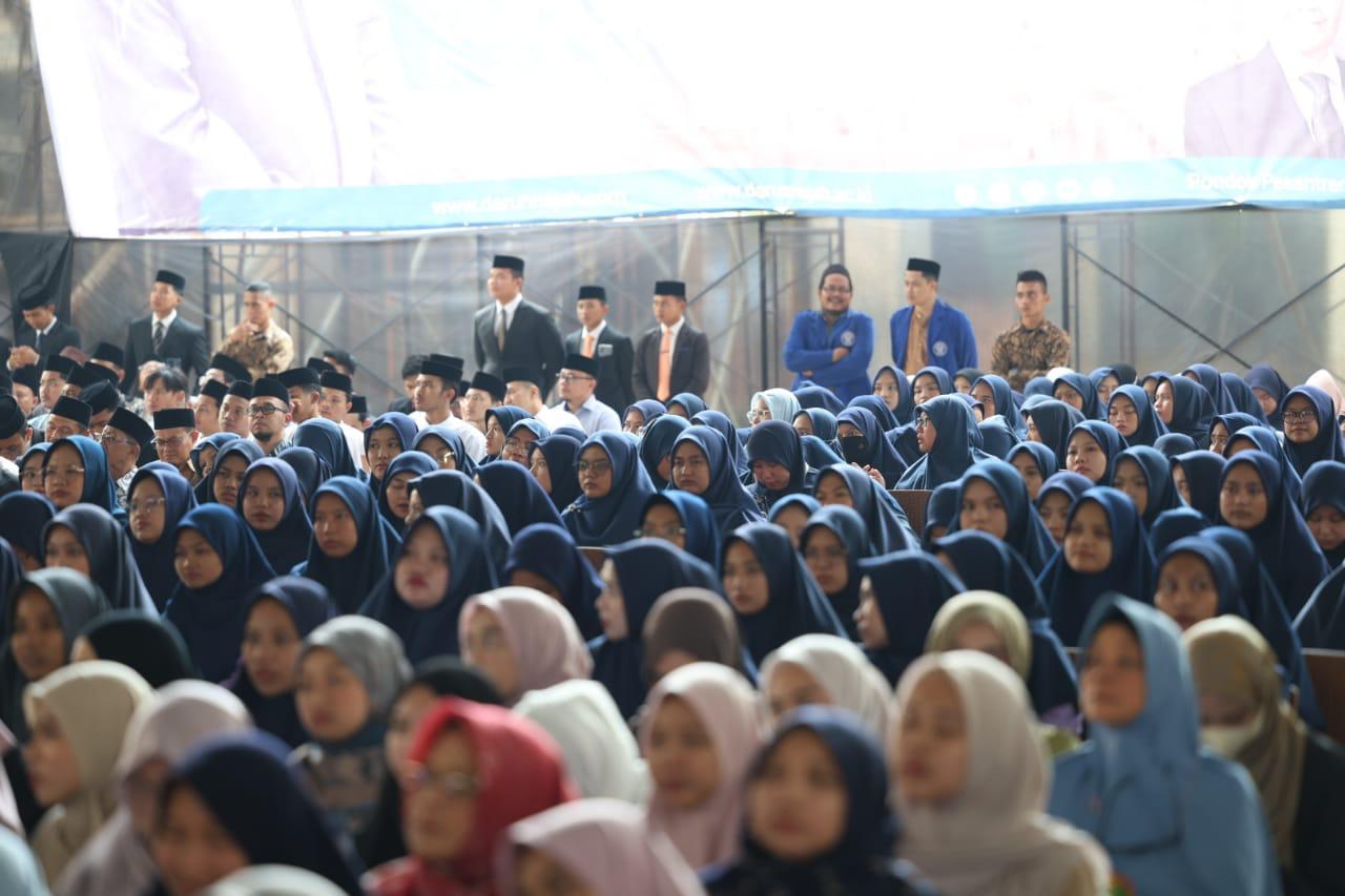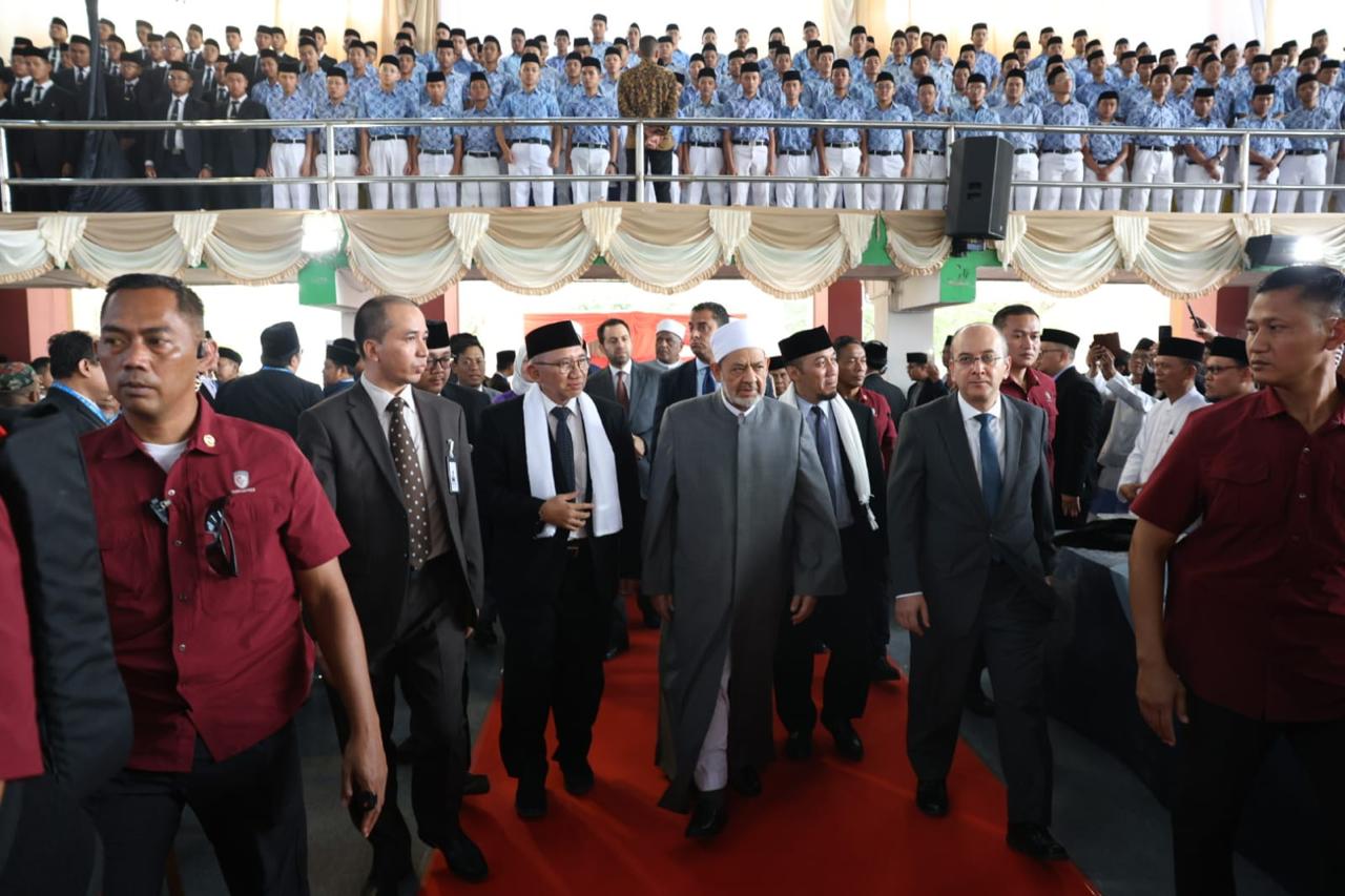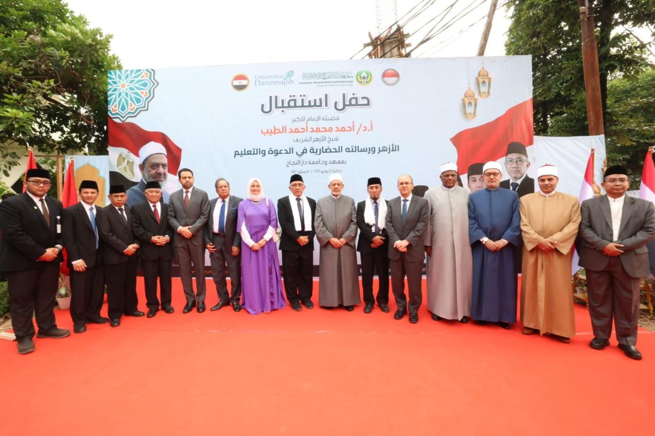 وفي كلمته، أعرب فضيلة الإمام الأكبر شيخ الأزهر رئيس مجلس حكماء المسلمين عن سعادته الغامرة برؤية هذه الوجوه المنيرة من الطلَّاب والطالبات، مشيرًا إلى أنه برؤيتهم اليوم تَولَّد لدى فضيلته شعورٌ بأن الإسلام لديه رجال ونساء قادرون على حمل رسالته، مشيرًا إلى تميز طلاب إندونيسيا الوافدين للدراسة في الأزهر، وضربهم المُثُل في الالتزام بالأخلاق والجِدِّ في تحصيل العلوم، مؤكدًا أن أبواب الأزهر ستظلُّ مفتوحة لكل الطلاب الإندونيسيين الراغبين في تلقي الدِّراسة بالأزهر، كما قرَّر فضيلته تخصيص عددٍ من المنح الدراسية الأزهريَّة لطلاب معاهد وجامعة دار النجاح الإسلامية الإندونيسية تشجيعًا لهم على استمرار التفوق والتميز.