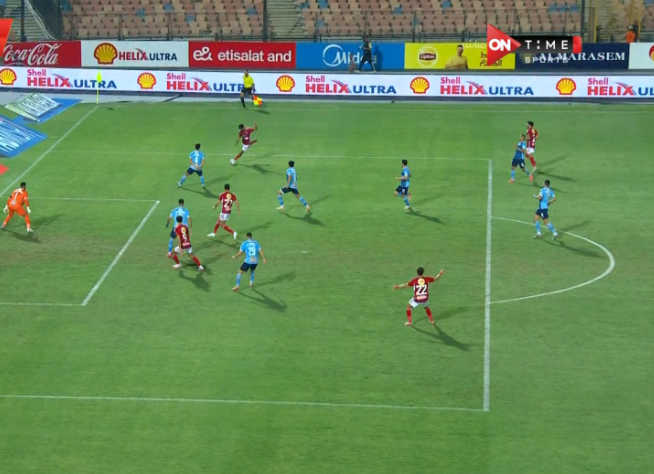 ووصلت الكرة إلى طاهر محمد طاهر ووصلت الكرة إلى حسين الشحات داخل منطقة الجزاء ويمرر الكرة لوسام أبو علي الغير مراقب ويسجل الهدف الأول للنادي الأهلي في المباراة.