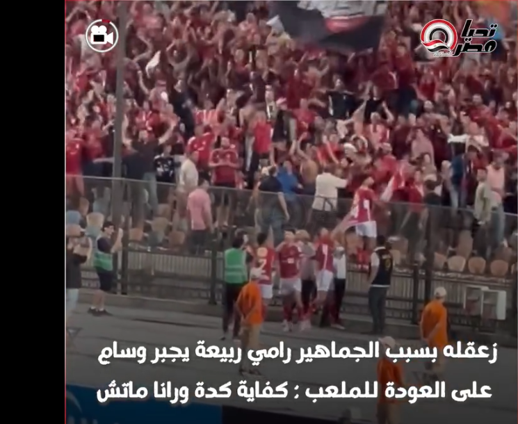 وقام رامي ربيعة بشد حسين الشحات بقوة من أجل العودة لأرضية الملعب واستكمال المباراة وإيقاف التفاعل والهتاف من جماهير النادي الأهلي من أجل التركيز في المباراة.