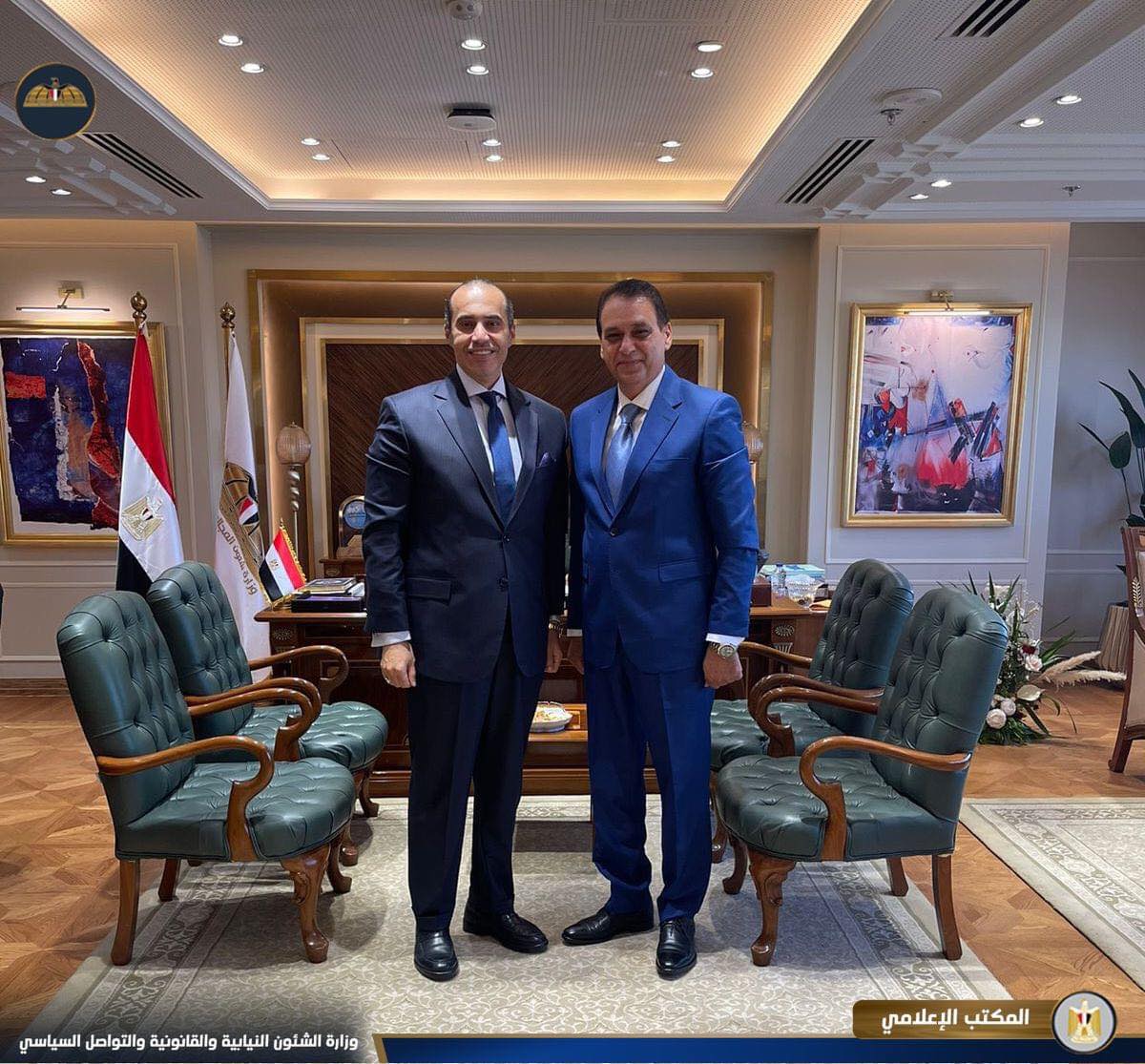 المستشار محمود فوزي وزير الشئون النيابية والقانونية والتواصل السياسي يستقبل المستشار علاء الدين فؤاد