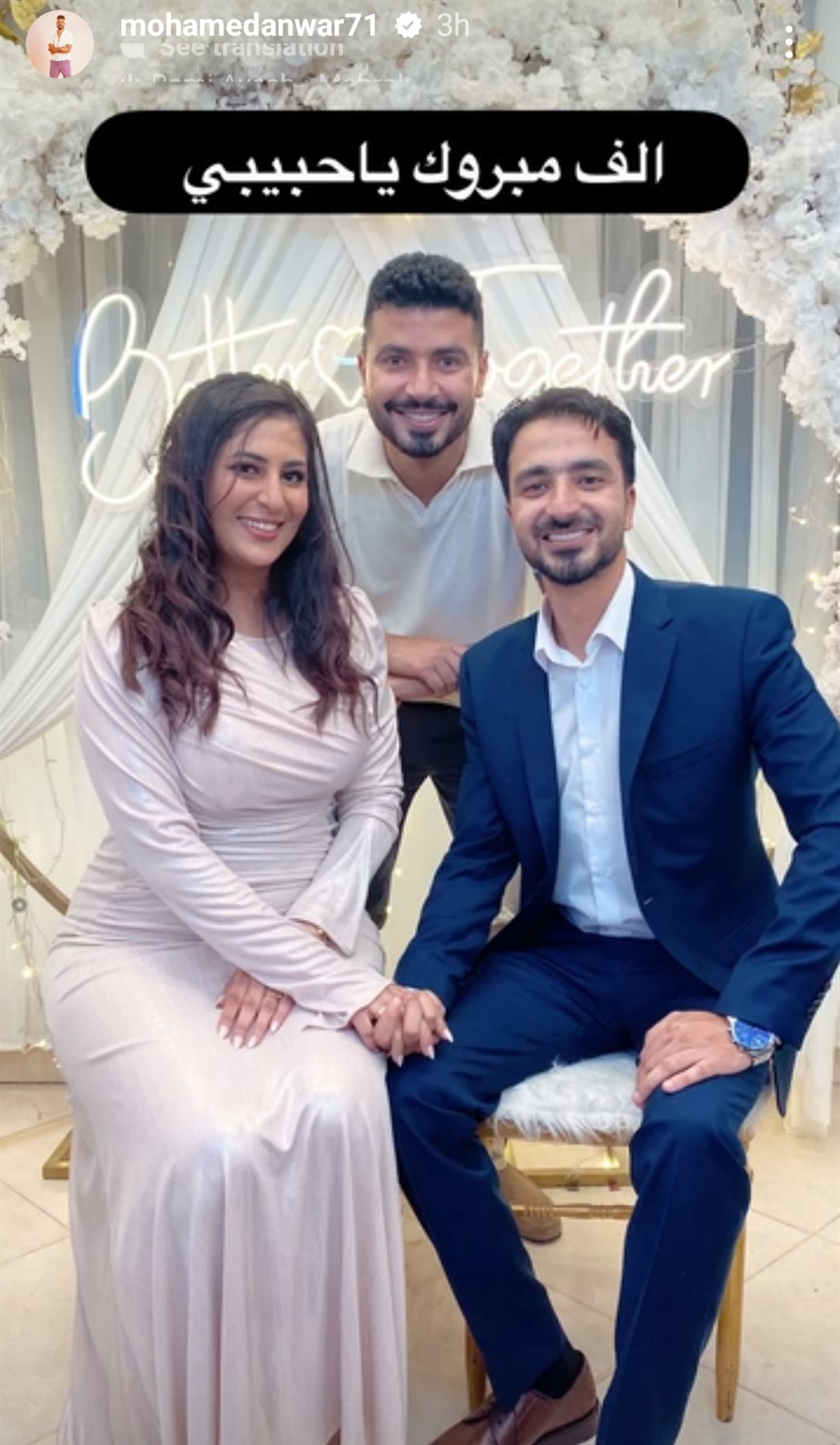 ونشر محمد أنور في منشوره الذي يرصده موقع تحيا مصر صورة له رفقة شقيقه وخطيبته من خلال خاصية استوري، وعلق عليها وكتب: "ألف مبروك يا حبايبي".