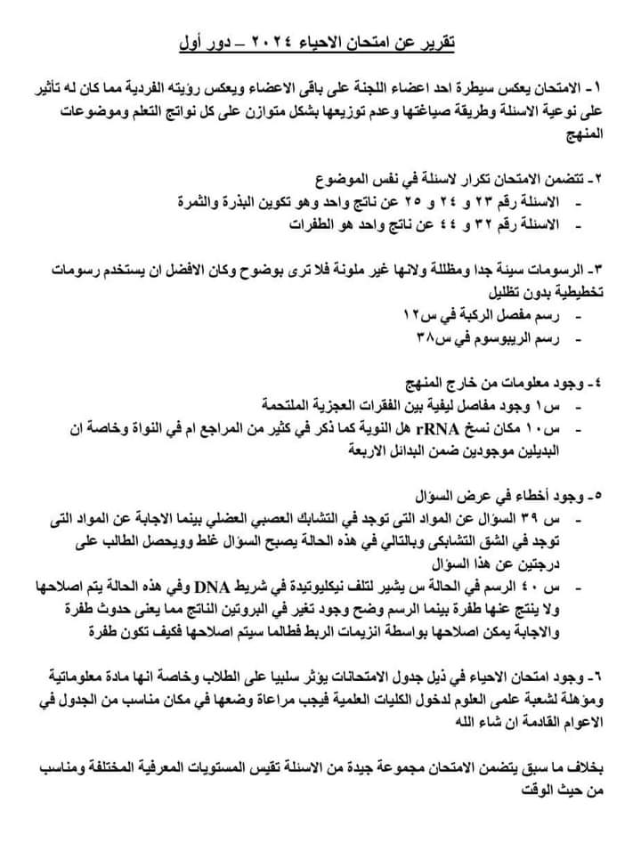 وأكد حسن محرم مستشار سابق لمادة الأحياء هناك بعض الأخطاء وأسئلة تحمل أكثر من إجابة.