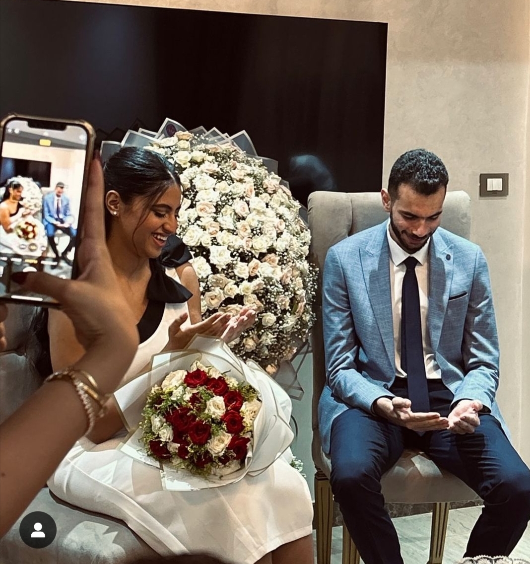 اعلن نجل الفنان بيومي فؤاد محمد بيومي عن خطوبته من فتاة من خارج الوسط الفني، وشارك محمد بيومي نجل الفنان بيومي فؤاد منشور عبر حسابه الرسمي على مواقع تبادل الصور والفيديوهات انستجرام مع عروسته أثناء قراءتهم الفاتحة وسط الأصدقاء والأقارب للعروسين، وعلق على الصور التي يرصدها موقع تحيا مصر بسورة الفاتحة وانهالت عليه التعليقات من داخل وخارج الوسط الفني مقدمين له التهنئة والدعوات بالتوفيق في حياتهم القادمة، وظهرت العروسة في الصورة وهي ترتدي فستان أبيض رقيق ولمسة بسيطة من المكياج الذي يبرز ملامحها الجميلة كما أنها اكتفت بربط شعرها دون القيام بأي شكل مبالغ فيه وهو ما لفت الأنظار إليها وأنها على الرغم من بساطتها إلا انها ظهرت بمظهر راقي وجذاب.