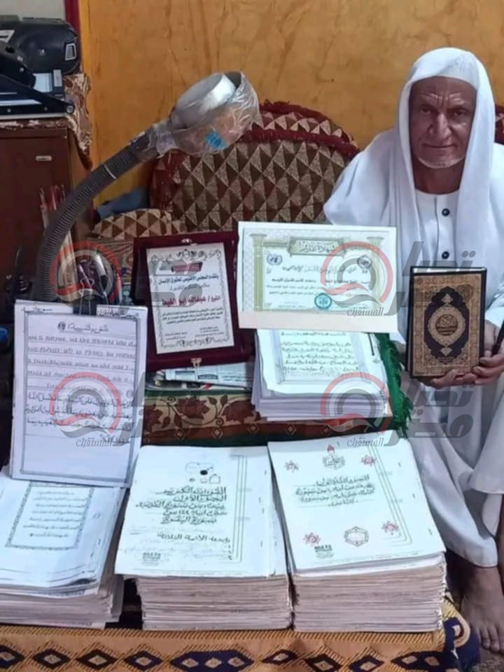 من بينهم نسخة بالإنجليزية.. تشييع جنازة الشيخ «عبدالله أبو الغيط» كاتب القرآن الكريم 4 مرات بخط يده 4 مرات بخط يده