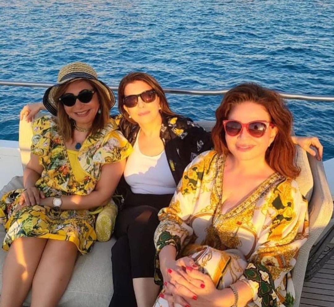 رحلة بحرية.. إلهام شاهين برفقة ماجدة الرومي ولميس الحديدي وأخواتها بالساحل الشمالي