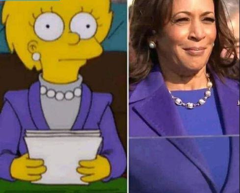 وعلى صعيد متصل، كشفت الحلقة السابعة عشر من مسلسل The Simpsons 11، والتي كانت باسم بارت إلى المستقبل، فوز كامالا هاريس برئاسة أمريكا وكانت تدعى في مسلسل The Simpsons ليزا سيمبسون، وجاء الربط بينها وبين كامالا هاريس بسبب الشبه لحد التطابق بين ملابس الشخصية الكارتونية وملابس كامالا هاريس.