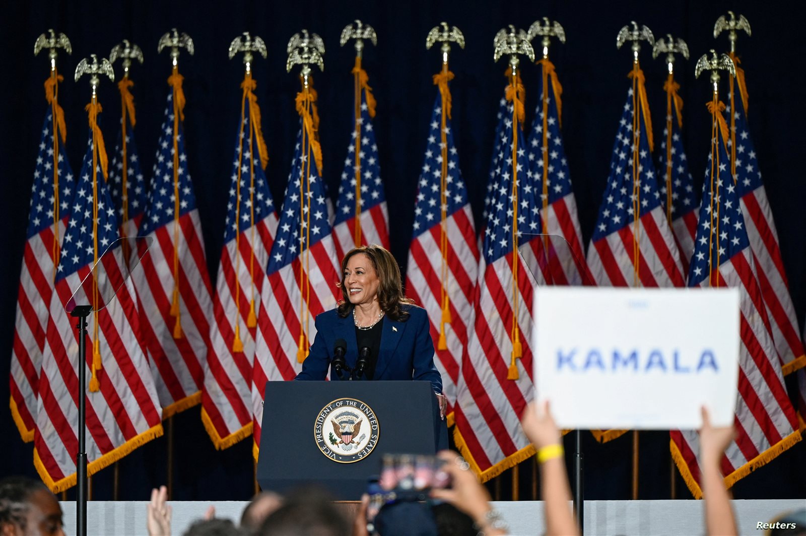 وهاريس هي أول امرأة سوداء ومن أصل جنوب آسيوي تشغل منصب نائب الرئيس. وانضمت إلى قائمة بايدن بعد مسيرتها الصعبة في سباق ترشيح الحزب الديمقراطي لرئاسة عام 2020.