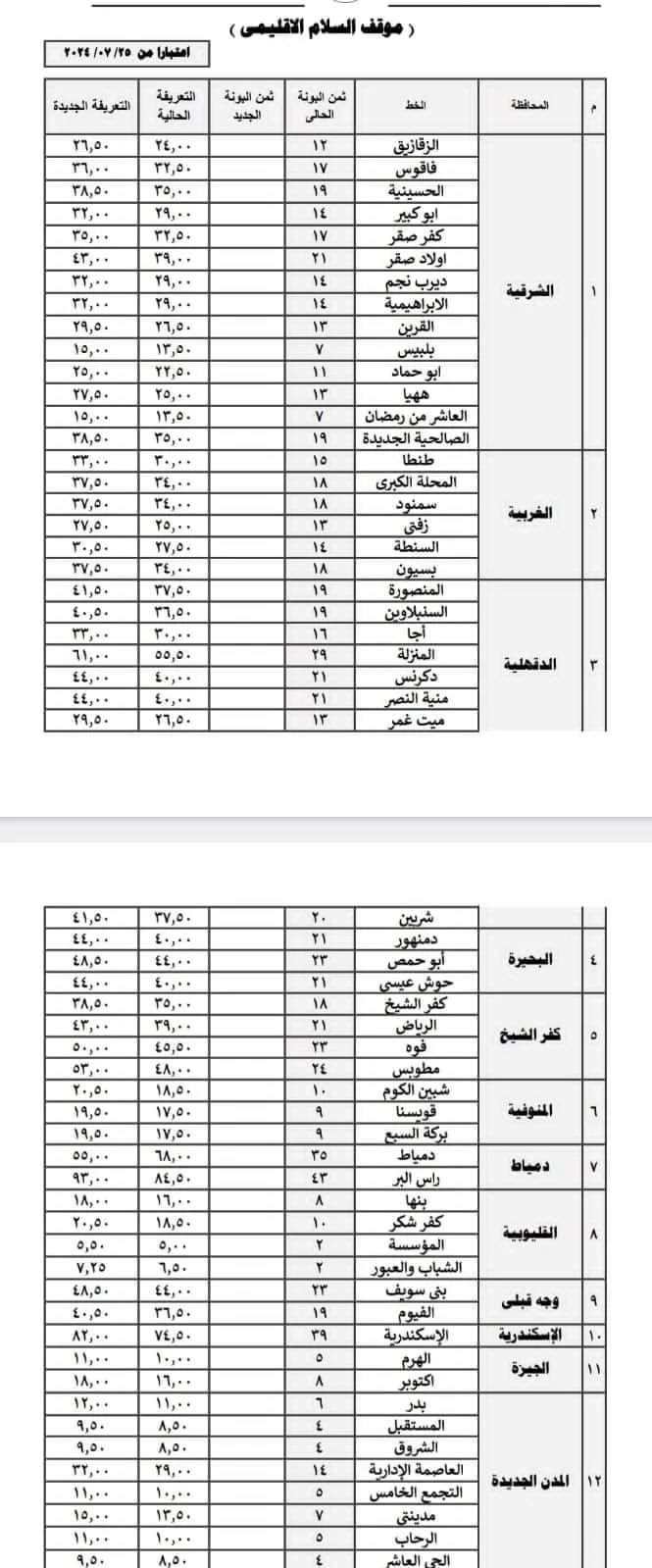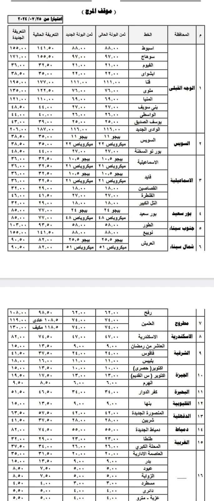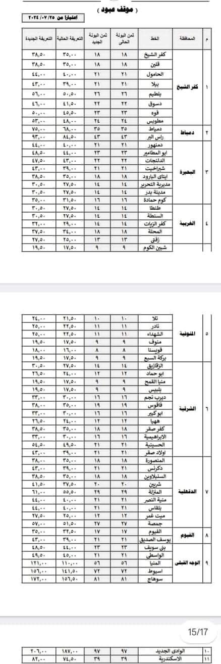 محافظ القاهرة يوجه بلصق منشورات للتعريفة الجديدة بعد زياة اسعار البنزين اليوم