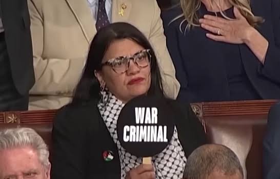 ولعل أبرز المشاهد التي حظيت باهتمام عالمي عندما قامت النائبة رشيدة طليب برفع لافتة مكتوب عليها "مجرم حرب" بوجه نتنياهو، ومواجهته بحقيقة الجرائم والانتهاكات التي يمارسها الجيش الإسرائيلي ضد الفلسطينيين.