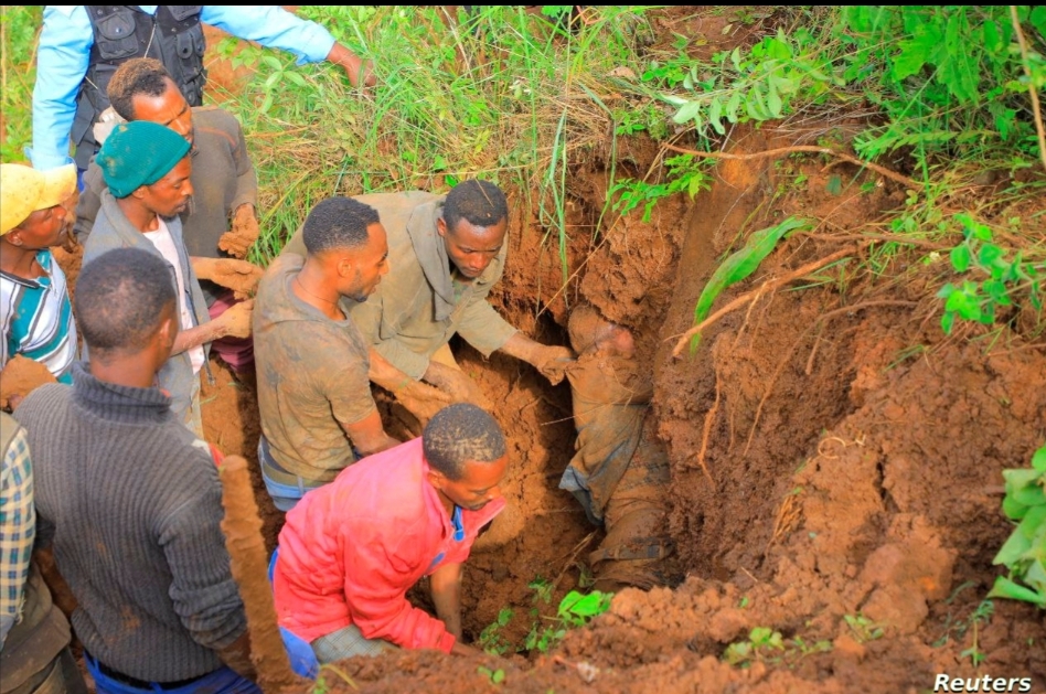 ويواصل رجال الإنقاذ البحث عن الجثث في منطقة كينشو شاشا غوزدي بإثيوبيا ثاني أكبر دولة من حيث عدد السكان في أفريقيا.